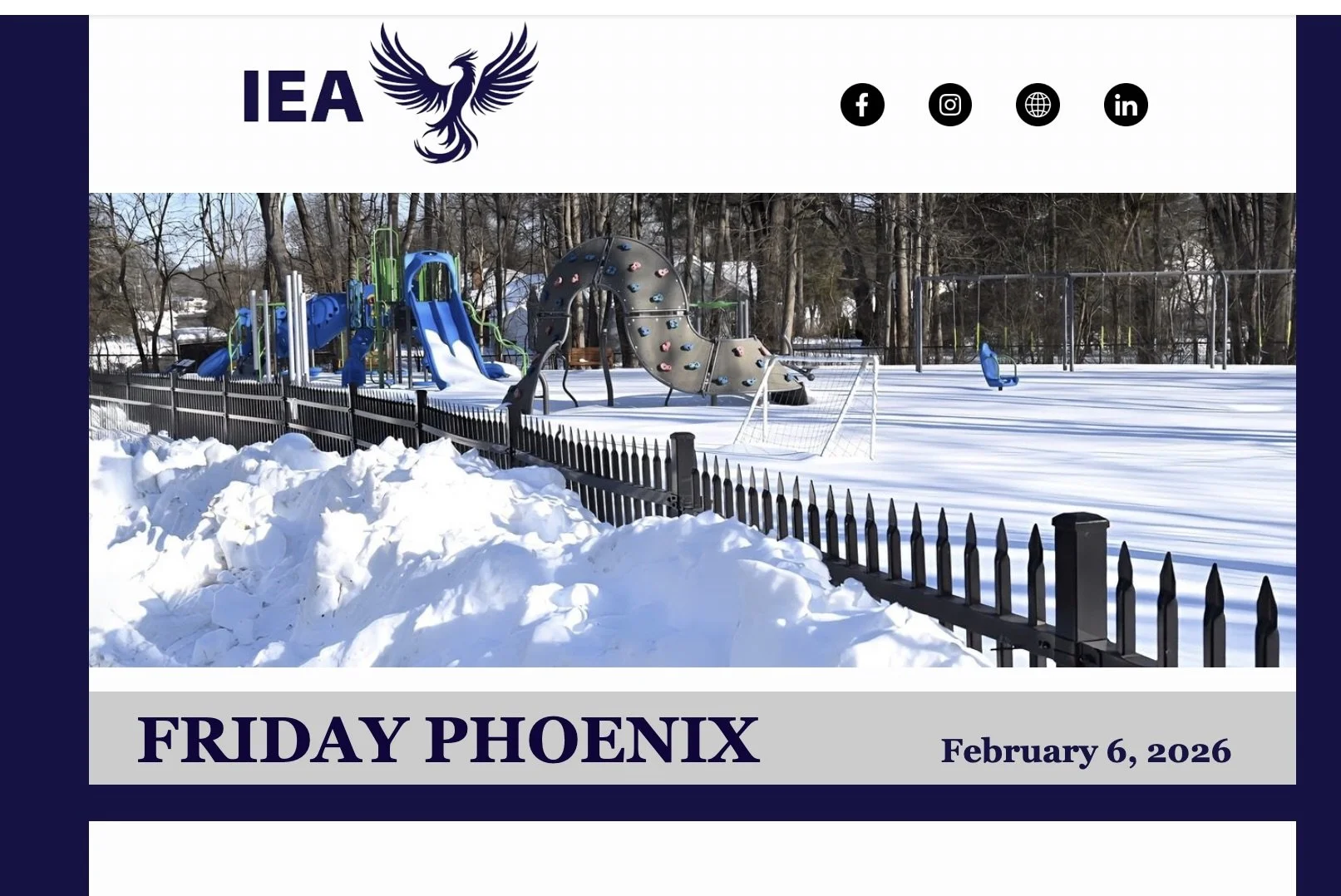 The bi-weekly Friday Phoenix Newsletter is filled with student and family information shared by our Director of Education. Families love to see what goes on each week at IEA. Moreover, the newsletter keeps families up to date with upcoming events. A monthly newsletter is also sent to families from our Development Office which focuses on activities and resources outside of IEA.